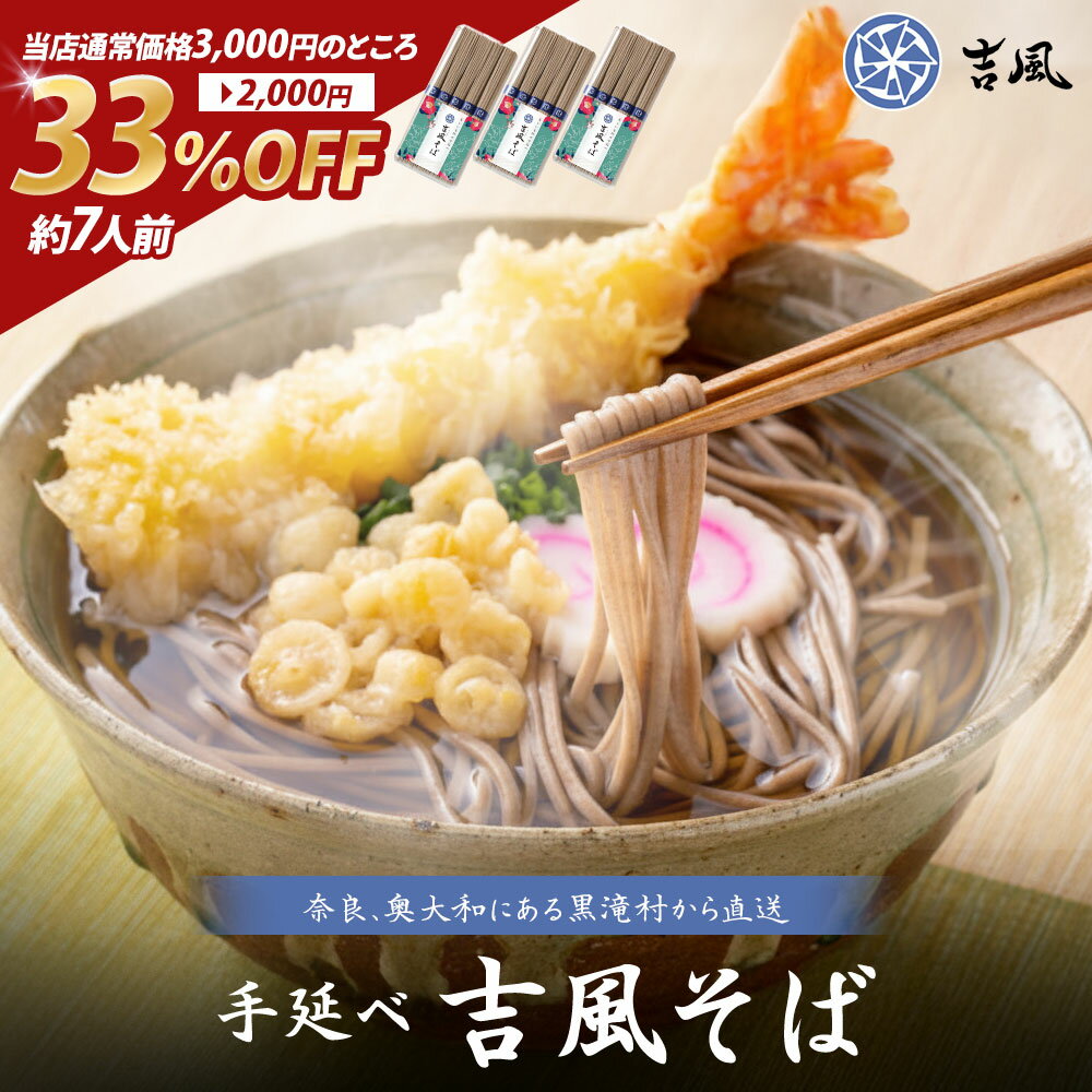 【期間限定33%OFF】単品合計価格3000円→2000円 手延べそば 5束×3袋 合計750g【約7人前サイズ】 吉風そば 国産 手延べ 蕎麦 奈良県三輪 名産 高級 家庭用 自宅用 普段遣い おうちごはん 常備用 乾麺 コシ強い のどごし滑らか 長期保存 常温保存対応 製麺所直送 ギフト