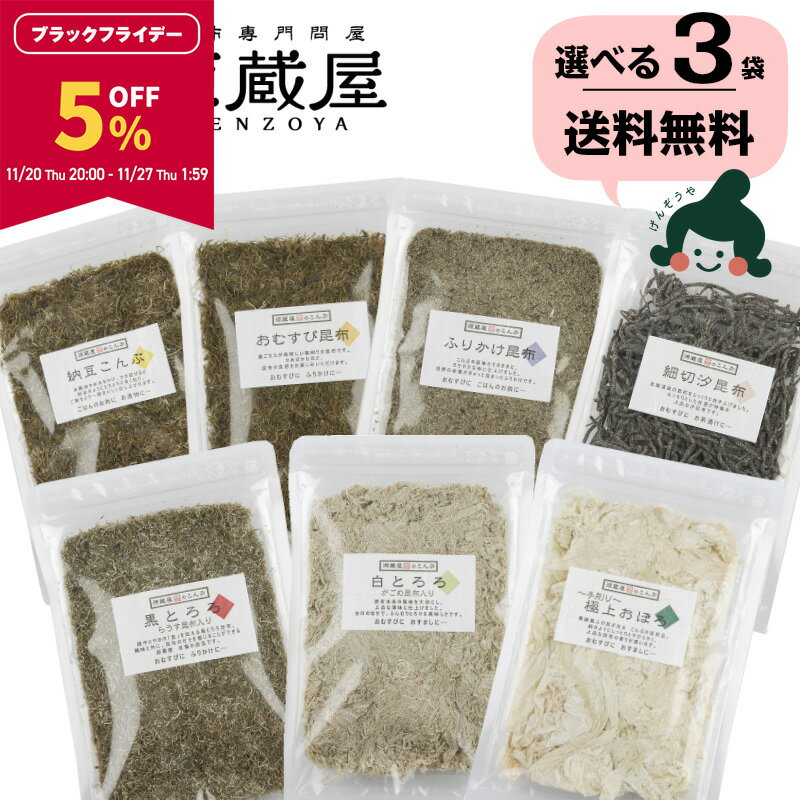 【5%OFF★BLACK FRIDAY限定!27日1:59まで】[選べる3袋]とろろ昆布 7種類 黒とろろ 白とろろ おぼろ昆布 おむすび昆布 昆布ふりかけ 納豆昆布 細切り塩昆布【食卓応援セール】