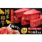 ふるさと納税 宇美町 【毎月定期便】A5、4等級 博多和牛ヒレシャトーブリアンステーキ 200g×5枚(宇美町)全10回