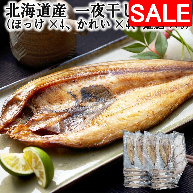【スーパーSALE 10%OFF!】 北海道産 一夜干し詰合せ (ほっけx4 かれいx4 姫鱈x8) 新鮮な魚介の旨味を逃さぬ一夜干し 素材の良さが引き立つ詰め合わせ