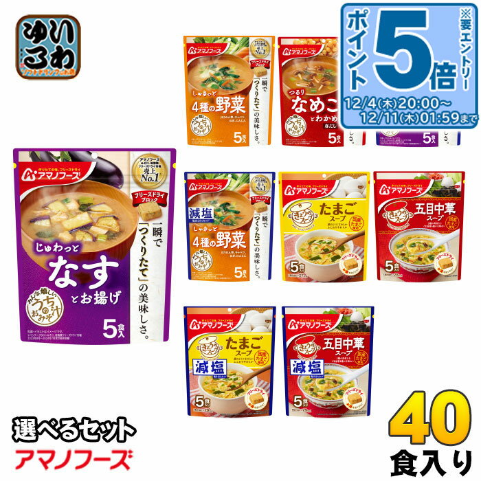アマノフーズ フリーズドライ 味噌汁 いつものおみそ汁 選べる 40食 (10食×4) お味噌汁 手軽 簡単 便利 即席 汁もの 減塩 塩分カット 楽らく 豆腐 ナス やさい