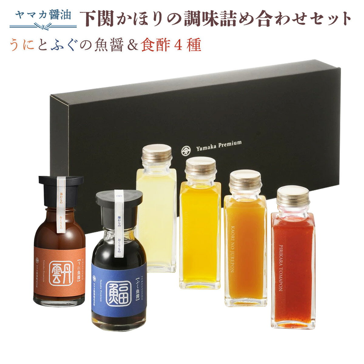 【10%OFF 楽天スーパーSALE限定】[ヤマカ醤油] 調味料 かほりの調味 詰め合わせ セット 6種 /うにとふぐの魚醤&食酢(かほりのジュレポン・ゆず塩ポン酢・味付けみかん酢・ぴりからトマポン)/ギフト 祝い 贈り物 無着色 取り寄せ プレゼント