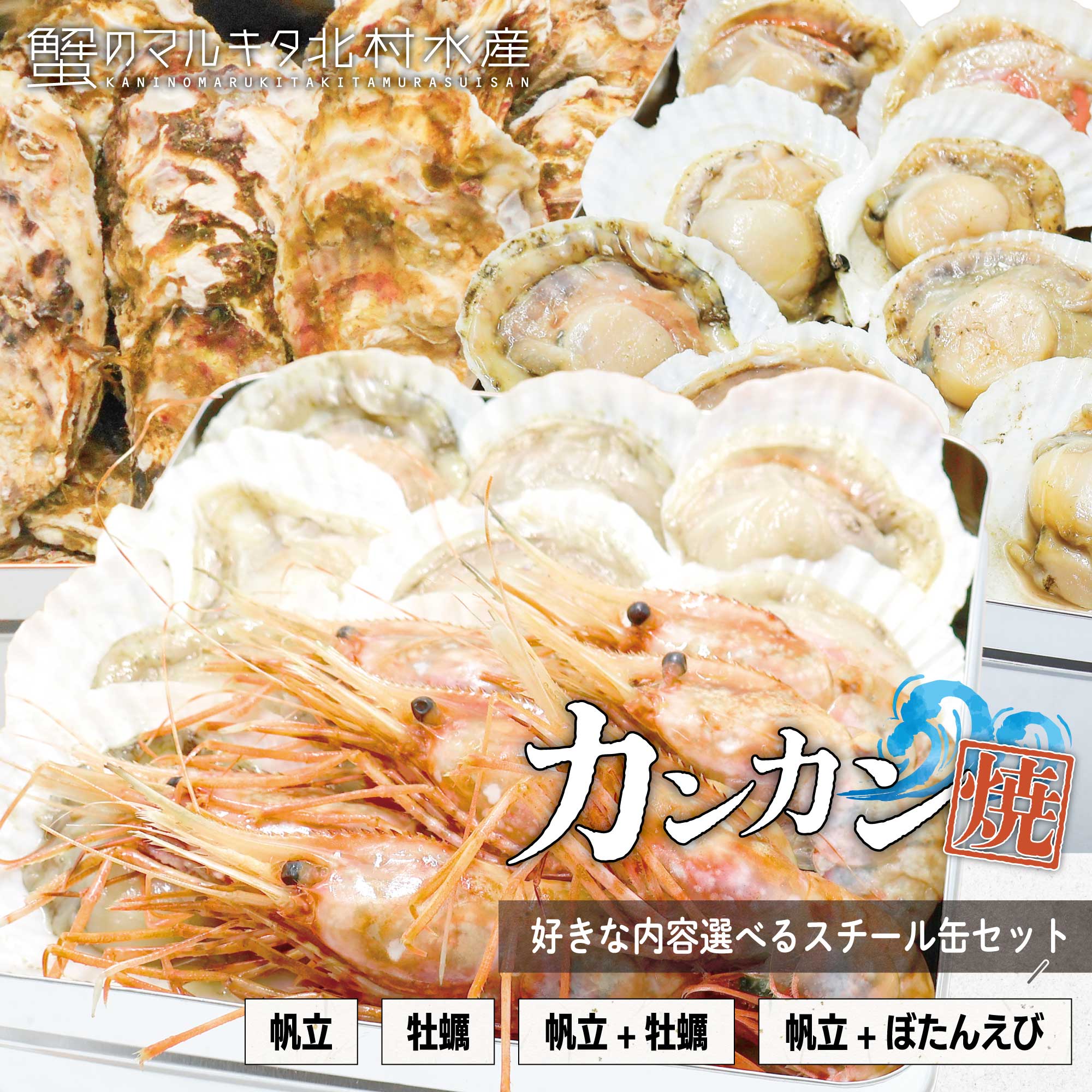 スーパーSALE10%OFFカンカン焼きセット 帆立 牡蠣 ぼたんえび スチール缶セットカンカン蒸し ガンガン焼き ガンガン蒸し ほたて かき 牡蛎 ぼたん海老 BBQ バーベキュー