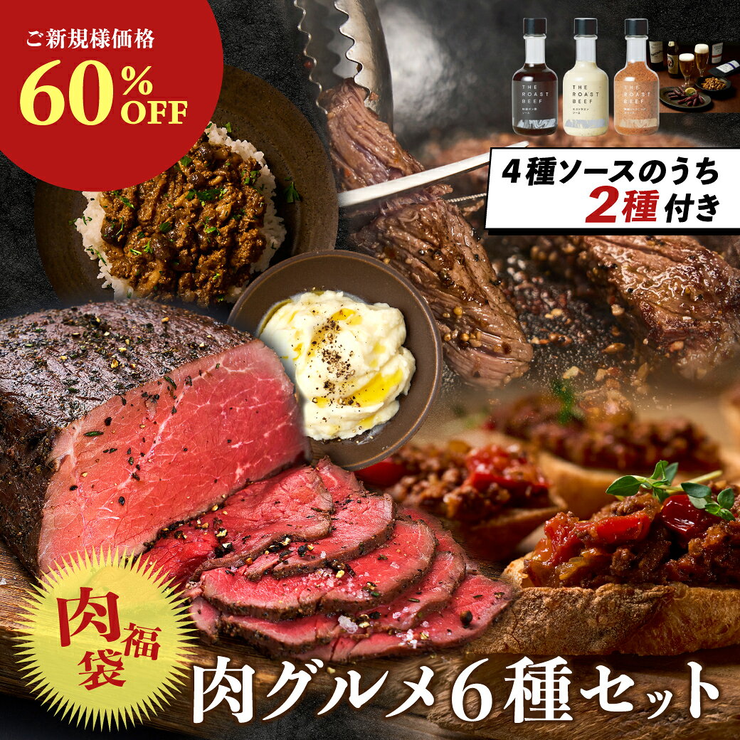 \ご新規様!60%OFF/【クリスマス・年末にもおすすめ】冬のご馳走肉福袋|絶品ローストビーフ200g・赤城牛焼肉300g・ごろっと牛肉の贅沢ボロネーゼ200g・和風キーマカレー200g・クリーミーマッシュポテト200g【特製ソース2種ランダム付き】|11月肉の日・福袋A