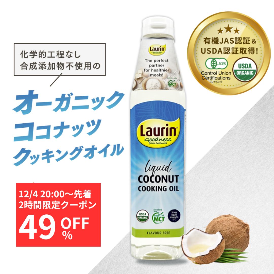 \先着 49%OFF全商品対象クーポン配布中 12/4 20時〜2時間限定/ ココナッツ クッキングオイル 加熱調理 オーガニック 有機JAS LAURIN ラウリン MCTオイル 100%ココナッツオイル由来 500ml 有機ココナッツ