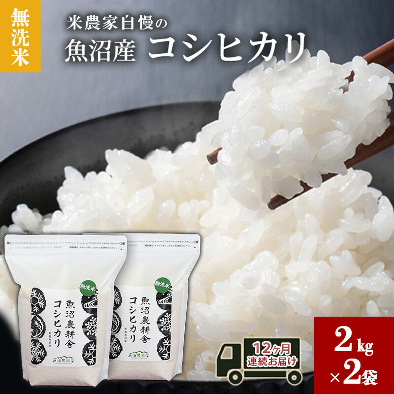 【ふるさと納税】無洗米 米農家自慢の 魚沼産 コシヒカリ2kg×2袋 12ヶ月連続お届け 米 お米 こめ こしひかり 白米 無洗 定期便 定期 隔月 新潟県 魚沼市 魚沼