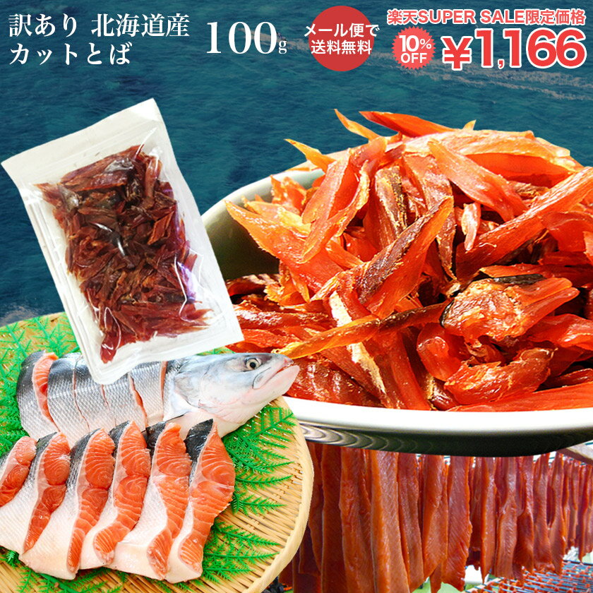 楽天スーパーセール 10%OFF 訳あり 北海道産 カット 鮭とば 100g 北海道(ホッカイドウ) 鮭とば メール便 送料無料 おつまみ 簡易包装 トバ シャケ サケ 珍味 ポイント 留萌 北海道 名産