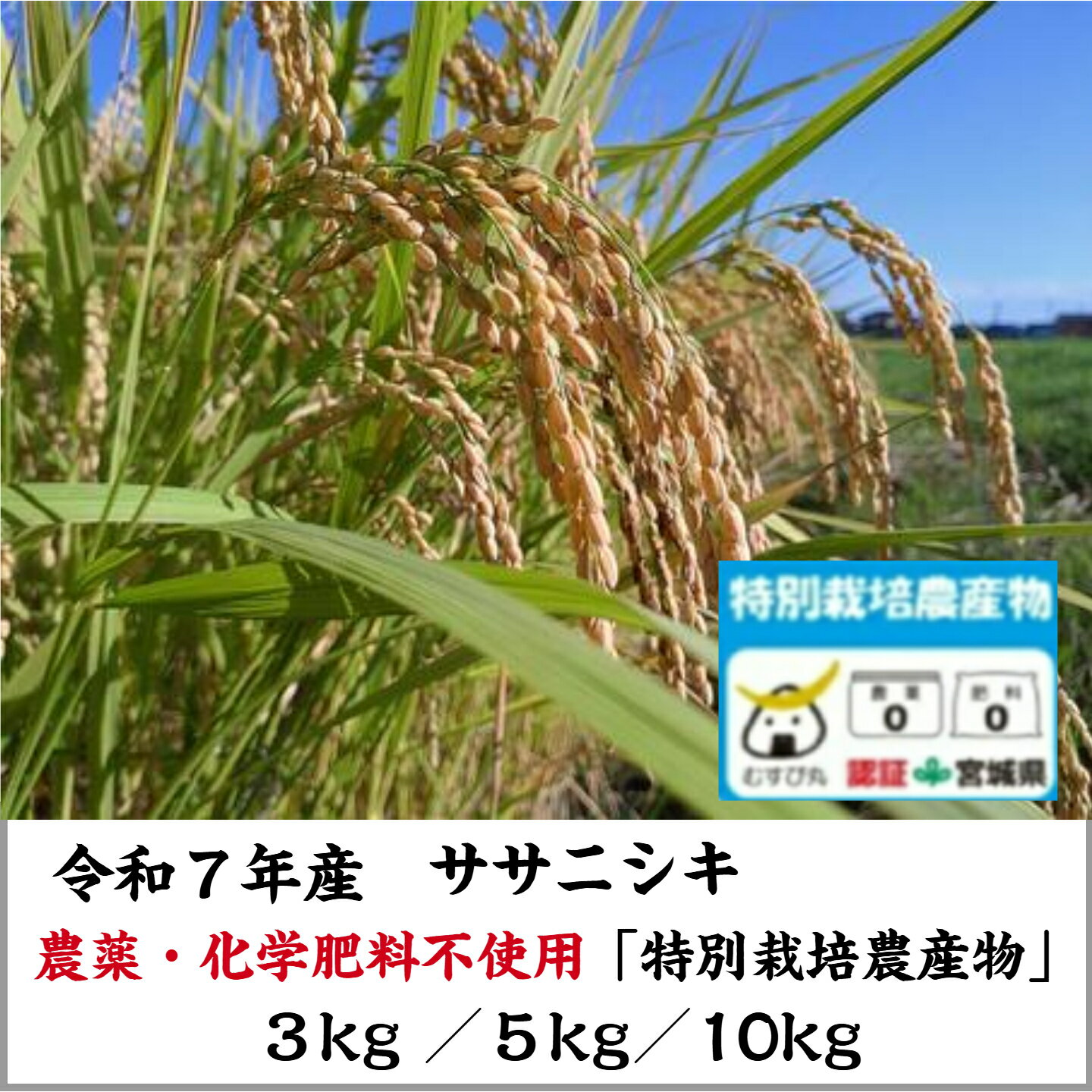 【令和7年産 ササニシキ】美味しいお米! 農薬・化学肥料不使用!「特別栽培農産物」令和7年産 佐藤さんちのササニシキ 精米 3kg 5kg 10kg石巻 無農薬 こだわり米 安心 安全 自然農法 精白米 ごはん ご飯 食品 米処 お米3キロ 5キロ 10キロ 送料無料