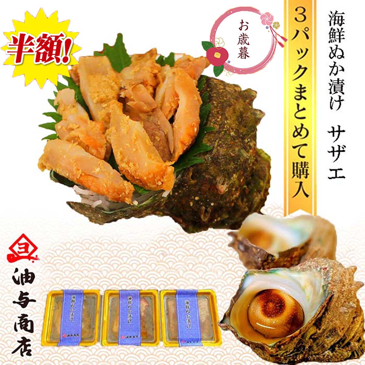 ★ 半額 SALE 楽天スーパーSALE ★ お歳暮 魚 お歳暮 早割 復興支援 復興 海鮮ぬか漬け サザエ 3パックまとめて購入【 ラッピング無料 】父親 誕生日 プレゼント 出産内祝い お祝い返し お祝い お返し 御礼 御祝 御歳暮 石川県 御年賀