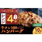 【ふるさと納税】<定期便3回>牛タン100% ハンバーグ 180g×10個 計1.8kg | 牛タン 冷凍 小分け ハンバーグ デミグラスソース 牛 惣菜 お弁当 おかず 粗びき レンジ レンチン 温めるだけ 簡単調理 小分け 茨城県 龍ケ崎市