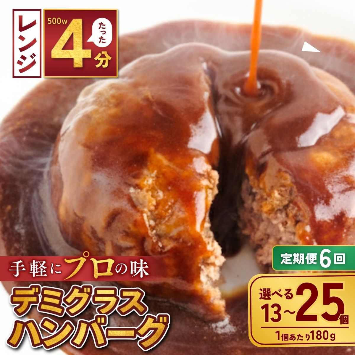 【ふるさと納税】<定期便6回>本格デミグラスハンバーグ 選べる個数 180g×13個~25個 | 冷凍 小分け ハンバーグ デミグラスソース 牛 豚 惣菜 お弁当 おかず 粗びき レンジ レンチン 温めるだけ 簡単調理 小分け 茨城県 龍ケ崎市