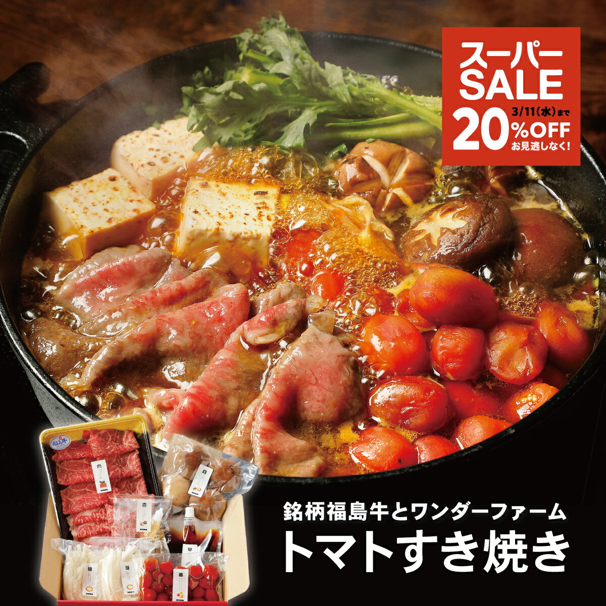 \セール限定3/11まで20%OFF/【福島牛×ワンダートマトのすき焼き】 2人前 フジテレビノンストップで紹介されました CROSS TOKYO 黒毛和牛 牛肉 すき焼き トマト すき焼きセット ワンダーファーム 野菜付き ギフト グルメ 冷凍 ホワイトデー 送別 誕生日 食労寿鍋 送料無料