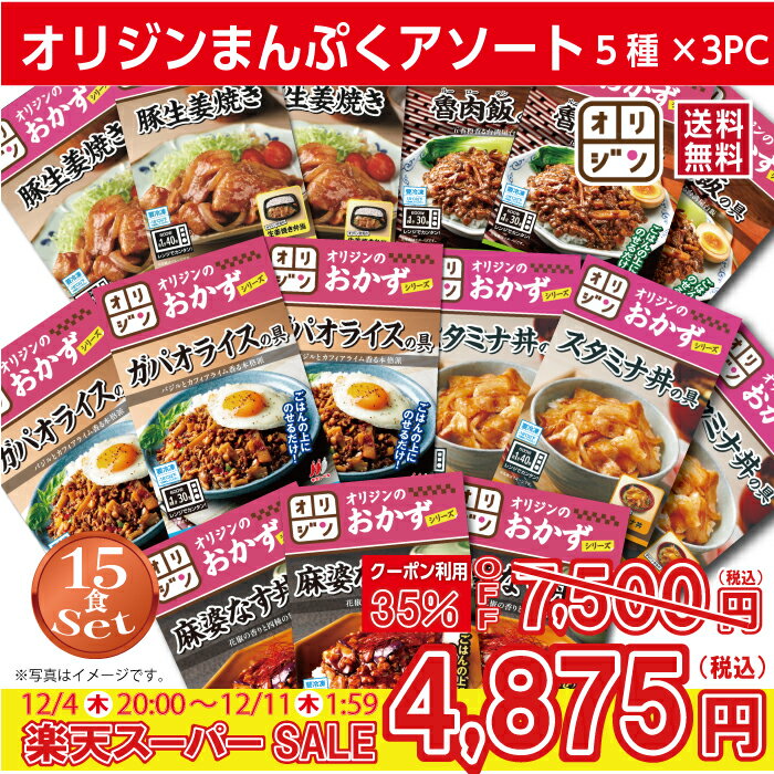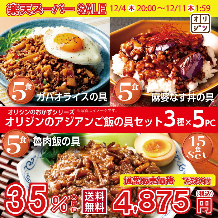 【★楽天スーパーSALE★クーポンご利用で35%OFF!~12/11 1:59まで】 まんぷくセット5種×3食 魯肉飯の具 豚の生姜焼き スタミナ丼の具 ガパオライスの具 麻婆なす丼の具15個セット 送料無料 冷凍 おつまみ 食品 単身赴任 時短 冷凍食品 時短 惣菜 キッチンオリジン