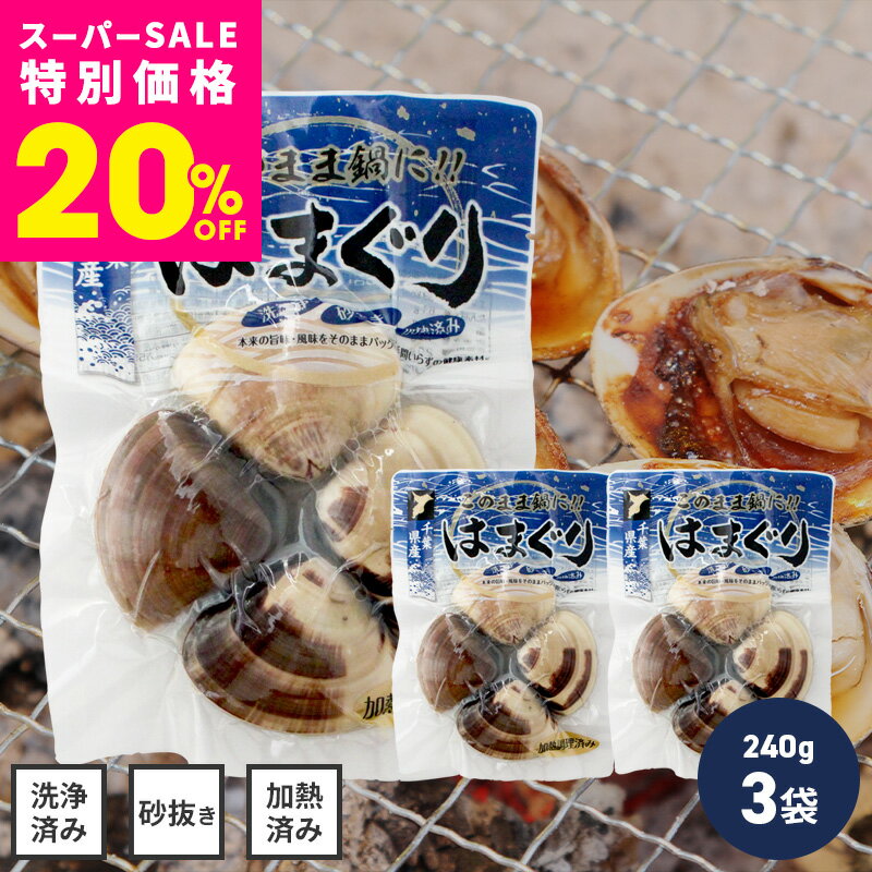【今だけ20%OFF スーパーSALE 】 \ 大粒はまぐり / \ 砂抜き不要 / 千葉県産 蛤 はまぐり 真空パック 240g 3袋セット お吸い物 酒蒸し バーベキュー バター焼き
