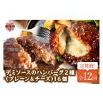 ふるさと納税 肉 ハンバーグ 福岡県 飯塚市 デミソースのハンバーグ2種セット(プレーン8個&チーズ8個)計16個 毎月定期便(計12回発送) K-036 惣菜 ハンバー…