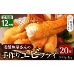 ふるさと納税 【12カ月定期便】創業45年「魚屋さんの手づくりエビフライ」20尾(800〜1000g)【海老フライ 夕食 おかず プリプリ 簡単 時短料理 揚.. 佐賀県神埼市