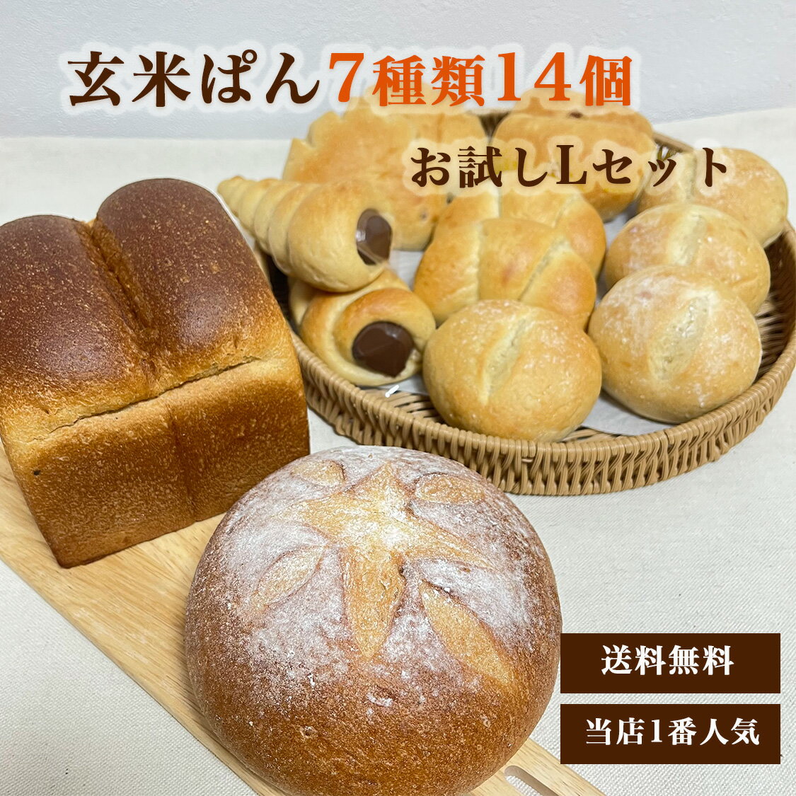 <玄米ぱん7種類14個Lセット> 定番一番人気のお試しセット 送料無料 ふわもち 玄米パン 生地無添加 冷凍パン 自然解凍 長期保存 詰め合わせ 低カロリー 低糖質 パン 令和のトレンドタイパ商品・めざまし8・イットで紹介。