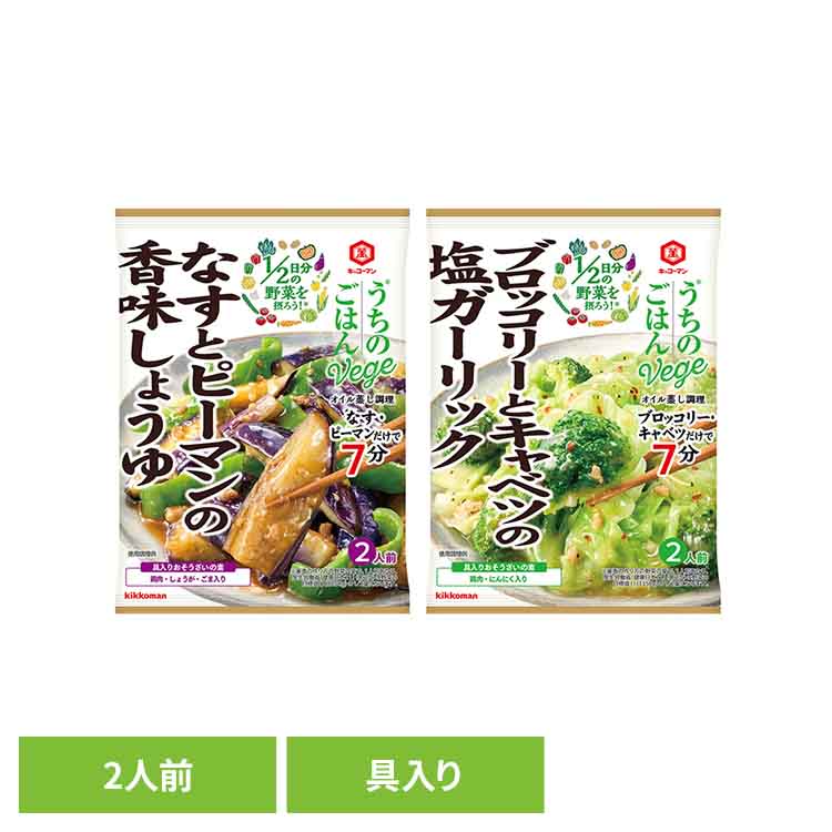 【27%OFF】うちのごはん Vege おそうざいの素 キッコーマン うちのごはん なす ピーマン フライパン 手軽 下ごしらえ お惣菜 和食 なすとピーマンの香味しょうゆ ブロッコリーとキャベツの塩ガーリック[2603SI]