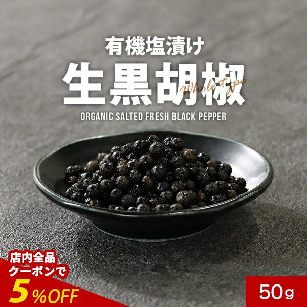【全品クーポンで5%OFF】有機 胡椒 塩漬け 有機JAS 認証 取得 生 黒胡椒 50g カンボジア 産 カンポットペッパー 送料無料 レビュー特典