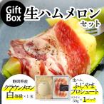 【送料無料】生ハムメロンギフトボックスセット (クラウンメロン白等級 1玉 (静岡県産) 生ハム(ふじやまプロシュート×3))