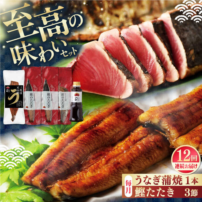 【ふるさと納税】【12回定期便】土佐料理司 高知本店 鰹たたき 3節 うなぎ 蒲焼 1尾 セット 【株式会社土佐料理司】[ATAD065] かつお 鰹 カツオのたたき カツオ ポン酢 天日塩 薬味 タレ たれ ぽん酢 ゆずぽん 鰻 ウナギ 蒲焼き かば焼き おかず 冷凍 パック 時短