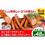 ふるさと納税 【6ヶ月定期便】ロングポークウインナー(約150g)とピリ辛ロングポークウインナー(約145g) 6ヶ月定期便(各4袋×6ヶ月) 計48袋(.. 熊本県菊池市