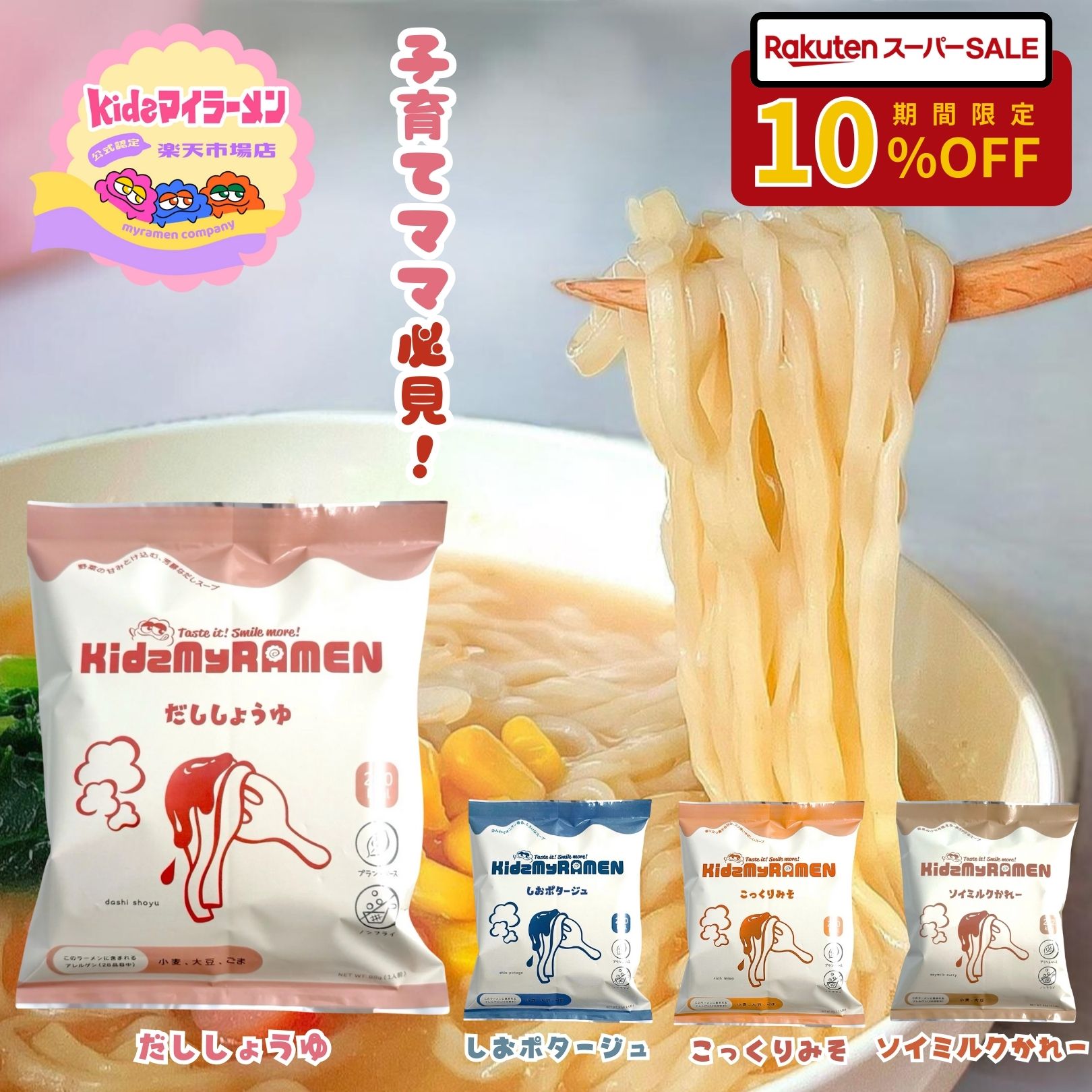 【★SALE★10%OFF】インスタントラーメン 無添加 子供 【楽天1位】キッズマイラーメン【公式】 こんぶしお こっくりみそ だししょうゆ ラーメン 即席麺 ノンフライ プラントベース 化学調味料不使用 保存料不使用 二段階熟成 平麺 大人一人前 送料無料