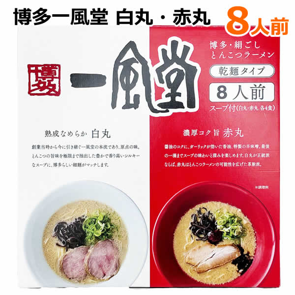 【送料無料】博多一風堂 白丸・赤丸 8食入 乾麺タイプ 8人前 スープ付 白丸4食 赤丸4食 中華めん とんこつラーメン ※賞味期限2026年6月20日