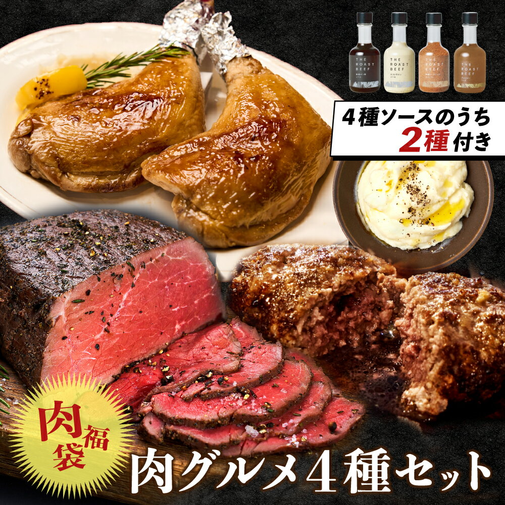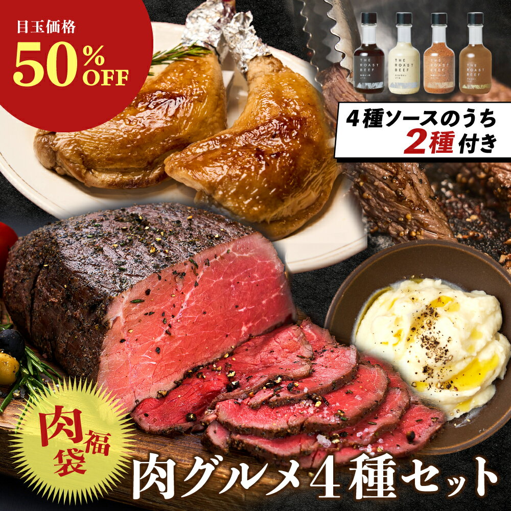 \20%OFF/【人気No.1の本格ローストビーフ含む】贅沢肉グルメ福袋|三宿ローストビーフ200g・ローストチキンレッグ2本(280g×2)・赤城牛ハンバーグ2枚(130g×2)・マッシュポテト200g【特製ソース2種ランダム付き】|スーパーSALE対象商品・福袋D