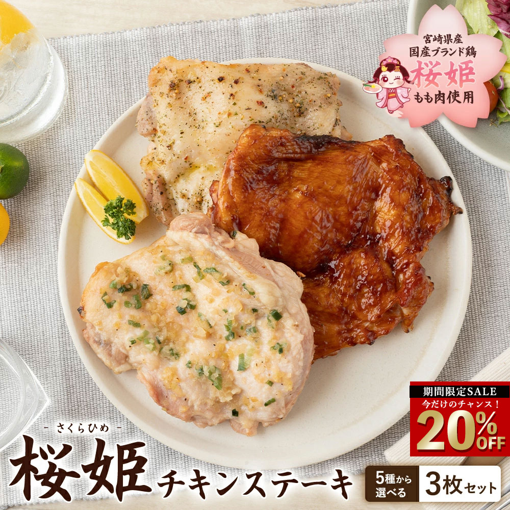 \今だけ!20%OFF/ 選べるテイスト 桜姫 チキンステーキ 3枚セット 鶏肉ブランド鶏 国産 冷凍 真空パック ローストチキン グリルチキン 惣菜 簡単調理 もも肉 お弁当 チキンソテー ギフト セール 楽天スーパーSALE