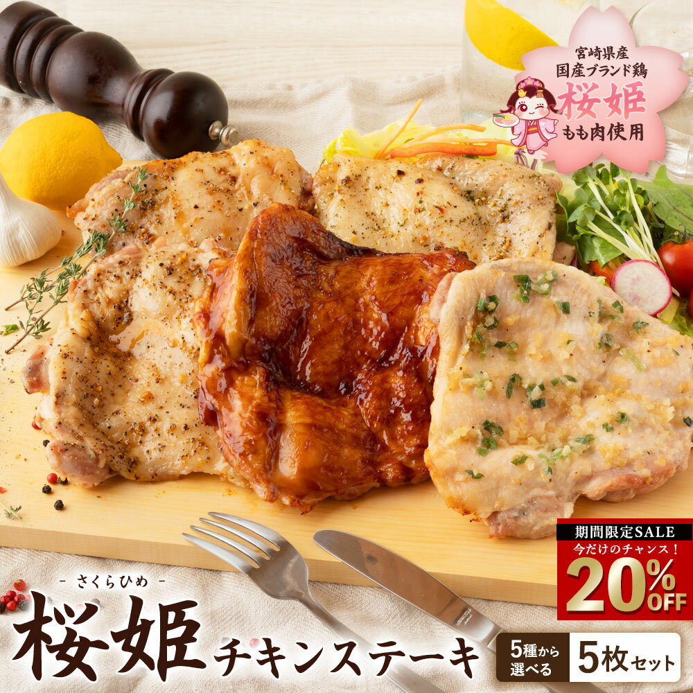 \今だけ!20%OFF/ 選べるテイスト 桜姫 チキンステーキ 5枚セット 鶏肉ブランド鶏 国産 冷凍 真空パック ローストチキン グリルチキン 惣菜 簡単調理 もも肉 お弁当 チキンソテー ギフト セール 楽天スーパーSALE