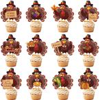 32個 秋のカップケーキトッパー 感謝祭の日のデコレーション用、感謝祭のケーキトッパー 七面鳥 パンプキンメープル感謝祭パーティー用品(ミックスB)