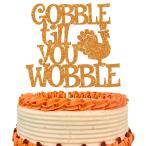 オレンジグリッター Gobble Till You Wobble ケーキトッパー、感謝/ハッピー感謝祭、秋の七面鳥感謝祭パーティーデコレーション