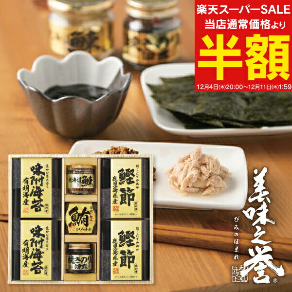 <スーパーSALE 50%OFF 半額>送料無料 送料込※沖縄・離島除く 美味之誉 詰合せ 5875-50 佃煮 海苔 鰊 フレーク 食品 グルメ ギフト セット 詰め合わせ 鰹節 かつお節 内祝い お返し 菓子折り 引越し 挨拶 香典返し 法事 お供え 手土産 / のし包装 メッセージカード無料