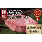 【ふるさと納税】【定期便】(年6回/偶数月お届け) 佐賀牛 ヒレステーキ 600g×6回 お肉の定期便・フィレステーキ 赤身 送料無料 A5〜A4 ヒレ ヒレ肉 牛 ステーキ ブランド牛 ブロック 人気 高評価 牛肉 高額 高額寄附 国産 佐賀県産 黒毛和牛 【Q400-001】肉本舗小城