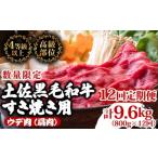 ふるさと納税 すき焼き 高知県 須崎市 定期便12回 土佐黒毛和牛ウデ肉すき焼き用 計9.6kg(800g×12ヶ月連続お届け) 3Jコース | 特撰 ウデ肉 肩肉 最上位等級…