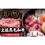 ふるさと納税 牛肉 しゃぶしゃぶ 高知県 須崎市 2回定期便 土佐黒毛和牛 食べ比べ 1400g (1.4kg以上) | Aコース 厳選 国産 しゃぶしゃぶ すき焼き 焼き肉 お…
