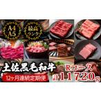 ふるさと納税 牛肉 サーロイン 高知県 須崎市 12回定期便 土佐黒毛和牛 食べ比べ 11720g (計11kg以上) | Rコース 厳選 国産 和牛 すき焼き しゃぶしゃぶ ステ…