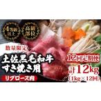 ふるさと納税 すき焼き 高知県 須崎市 定期便12回 土佐 黒毛 和牛 すき焼き用 計12kg(1kg×12ヶ月連続お届け)4Lコース | 特撰 リブロース肉 最上位等級 A4 A…
