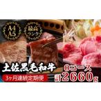 ふるさと納税 牛肉 焼肉・バーベキュー 高知県 須崎市 3回定期便 土佐黒毛和牛 食べ比べ 2660g (計2kg以上) | Oコース 厳選 国産 和牛 すき焼き ステーキ 焼…