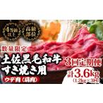 ふるさと納税 すき焼き 高知県 須崎市 定期便3回 土佐黒毛和牛ウデ肉すき焼き用 計3.6kg(1.2g×3ヶ月連続お届け) 3Kコース | 特撰 ウデ肉 肩肉 最上位等級 A…