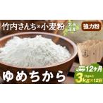ふるさと納税 米・パン 北海道 積丹町 12ヵ月定期便 竹内さんちの小麦粉 強力粉 北海道 春よ恋 1kg×3袋 保存に便利なチャック付袋 小分け お菓子 パン