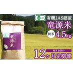 ふるさと納税 【2025年11月発送開始】 新米 竜源米 ひとめぼれ 精米 4.5kg 12ヶ月 定期便 【雫石八十八屋】 / 有機JAS認証 有機栽培 有機栽培米.. 岩手県雫石町