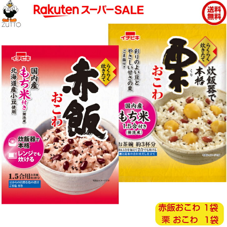 【楽天スーパーセール10%OFF★SALE】送料込み・ イチビキ らくらく炊きたて 赤飯おこわ・栗おこわ 各1袋(1.5合)国産米のもち米を使用しています
