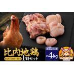 ふるさと納税 比内地鶏 1羽セット(もも・むね・ささみ) 約4kg(不定貫約1kg×4袋) 4キロ 国産 冷凍 正肉 鶏肉 鳥肉 秋田県上小阿仁村