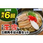 【ふるさと納税】【定期便 毎月6回お届け】そば処玉家 三枚肉そば 各月4食セット 冷凍配送 沖縄そば専門店