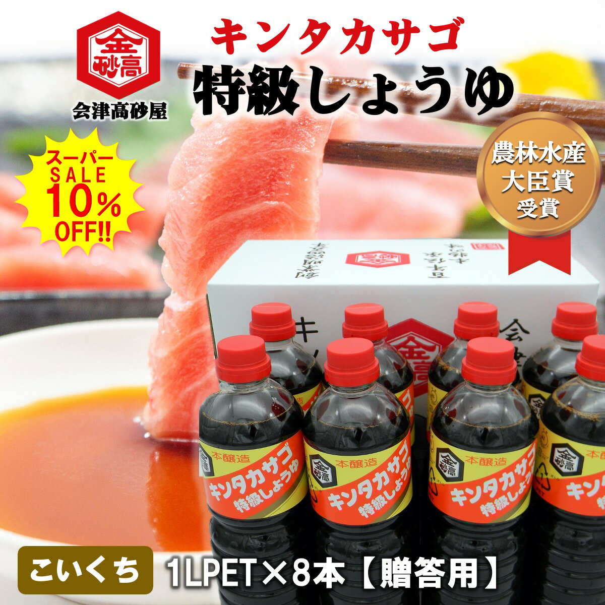【楽天スーパーSALE10%OFF】【贈答用・ギフト箱】醤油 濃口しょうゆ 会津高砂屋 キンタカサゴ 特級しょうゆ 1L PET 8本 美味しい しょうゆ 会津 蕎麦 刺身 割烹 淡麗 ギフト 中元 歳暮 手土産