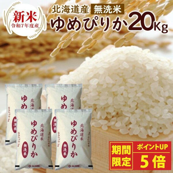 【28日限定!ポイント5倍】新米 令和7年 無洗米 ゆめぴりか 20kg(5kg×4袋)北海道産 / 送料無料 令和7年度産 お米 米 ゆめぴりか 20kg 北海道 無洗米(北海道別途送料/沖縄・離島対応不可)(配達日・時間指定は不可となります。)