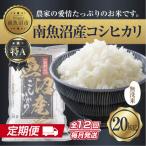 ふるさと納税 無洗米 新潟県 南魚沼市 定期便 無洗米 新潟県 南魚沼産 コシヒカリ お米 20kg×計12回 精米済み 年間 毎月発送 こしひかり(お米の美味しい炊…