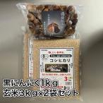 送料無料 有機JAS認証玄米6kg+黒にんにく1kg A級品 青森県産 岡崎屋 純黒ニンニク袋入り 米 無農薬コシヒカリ ごはん 免疫力 ギャバ 睡眠 リラックス お歳暮